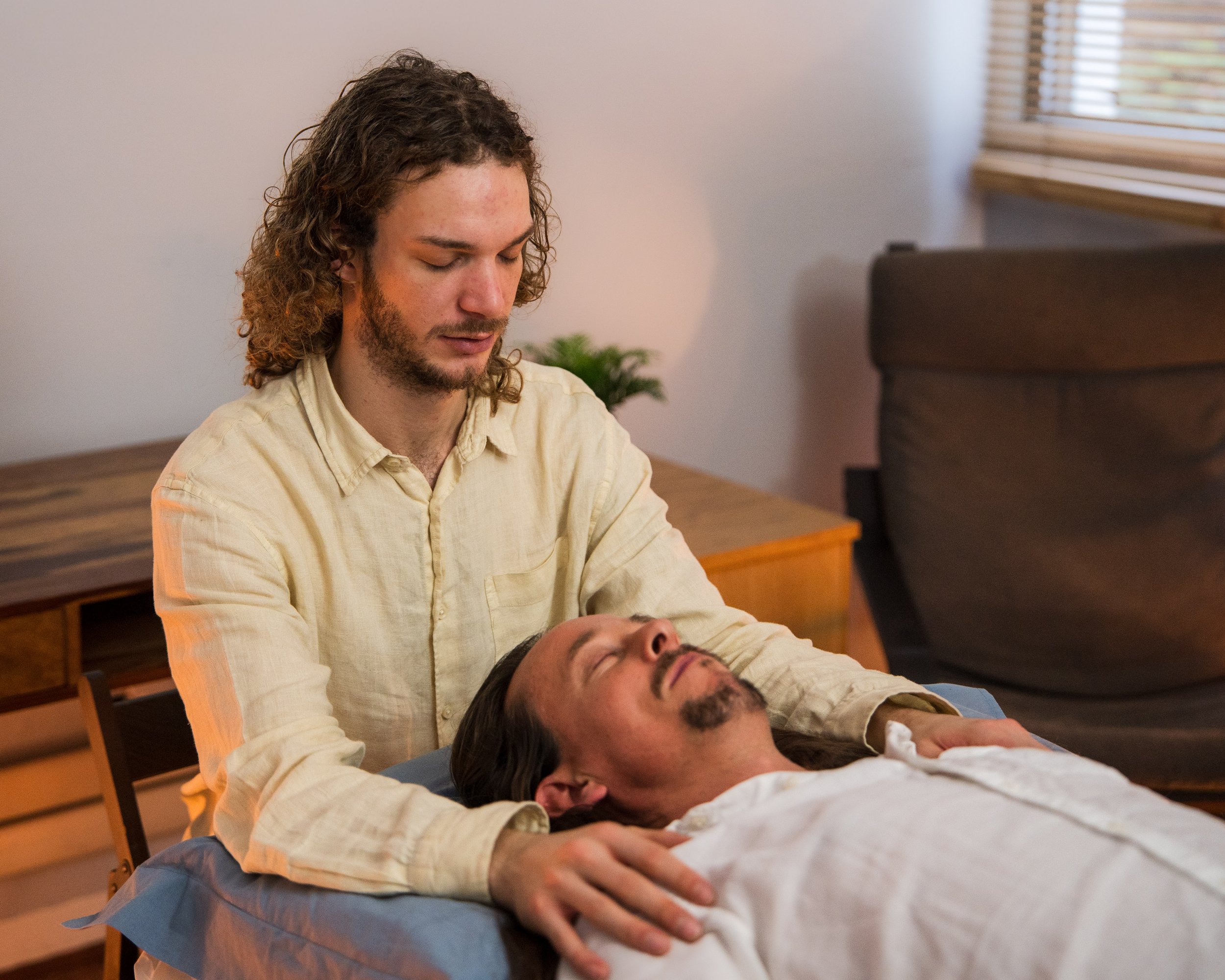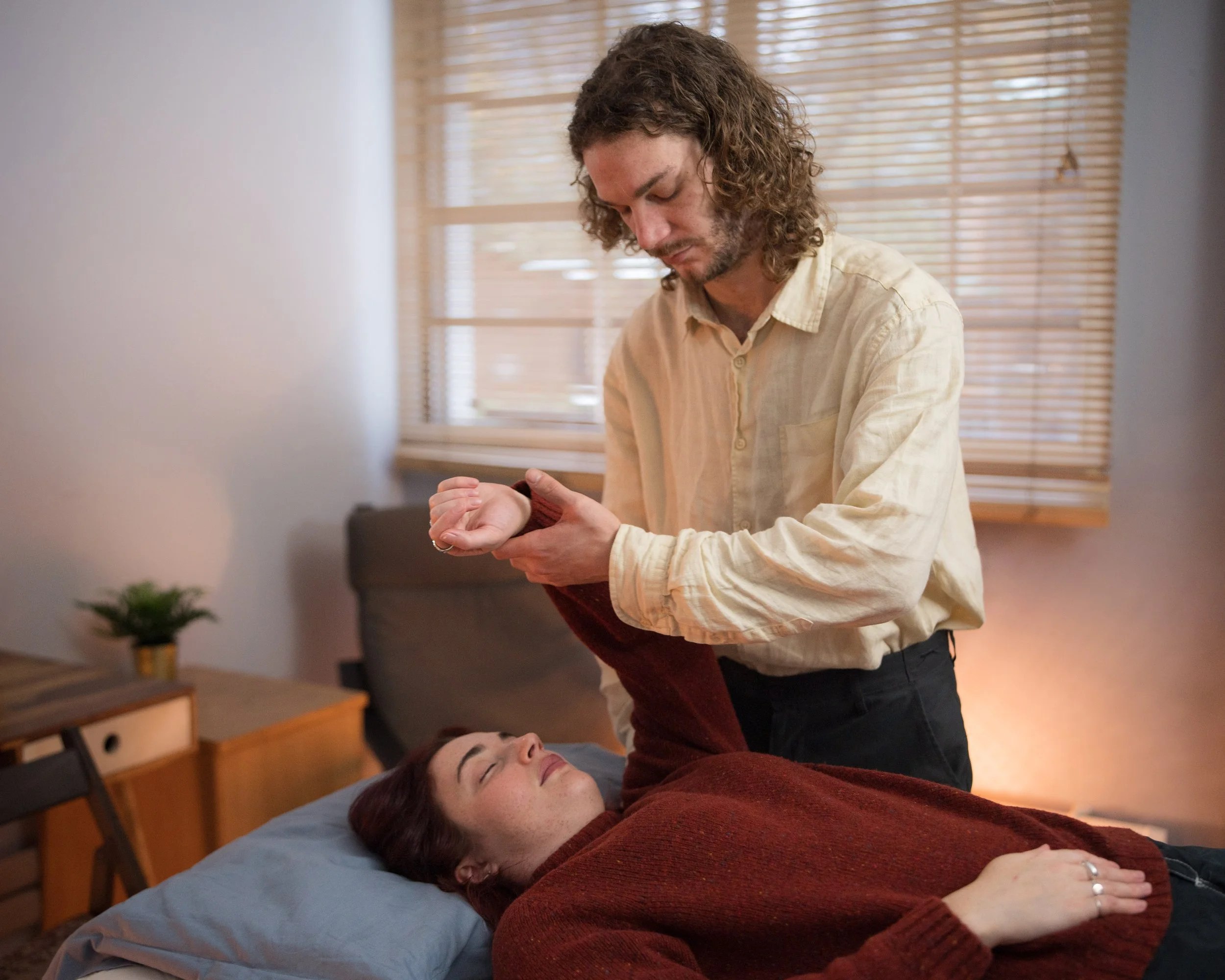 Every session is guided by what your body needs in the moment. Sometimes it’s deep stillness, sometimes it’s subtle movement. I also work with fascial unwinding—gently releasing patterns in the body’s connective tissue that hold tension and memory. Together, we create the conditions for your system to release, reorganise, and heal at its own pace.